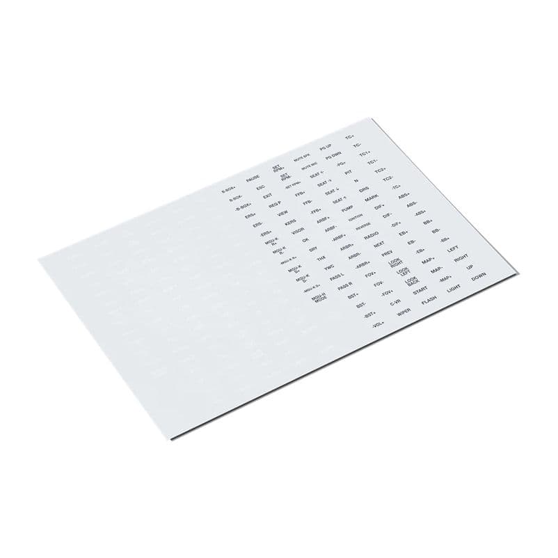 De set bevat 127 verschillende stickers met veelgebruikte sim racing functies zoals rembalans, DRS en motor- of brandstofbeheer. Hiermee label je je knoppen overzichtelijk en functioneel. Bovendien krijg je 98 extra rechthoekige stickers om labels direct op je stuur te plakken, die je net zo makkelijk kunt vervangen of aanpassen.