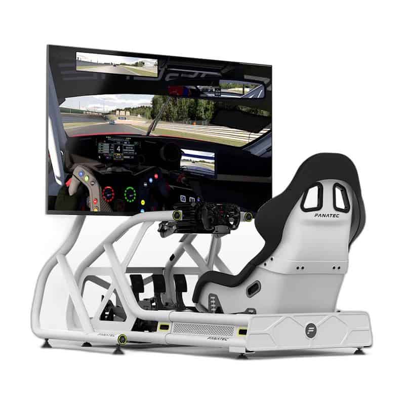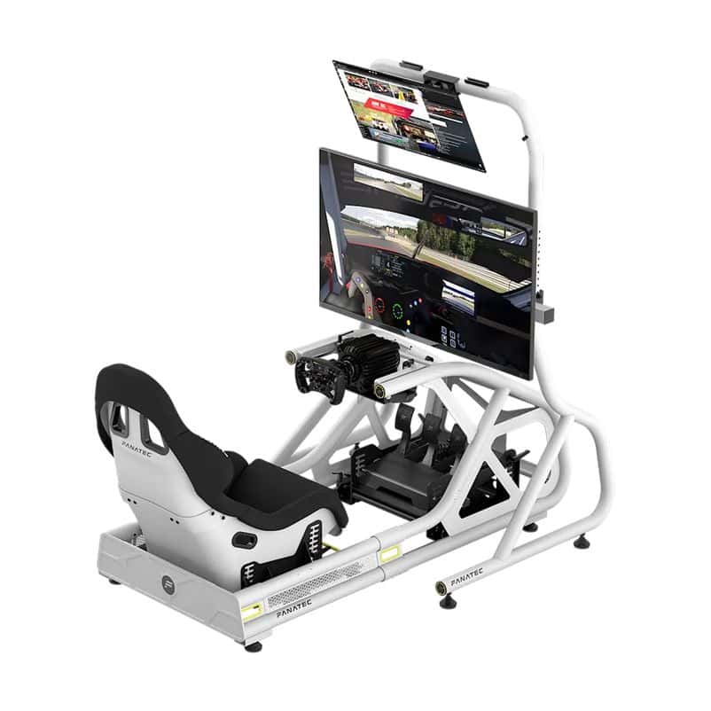 De GT Cockpit Monitor Stand in wit van Fanatec plaatst je beeldscherm precies waar je het nodig hebt voor een optimale kijkhoek tijdens het racen. Dankzij de ondersteuning van schermformaten van 32″ tot 65″ is deze stand geschikt voor vrijwel ieder breedbeeldscherm.